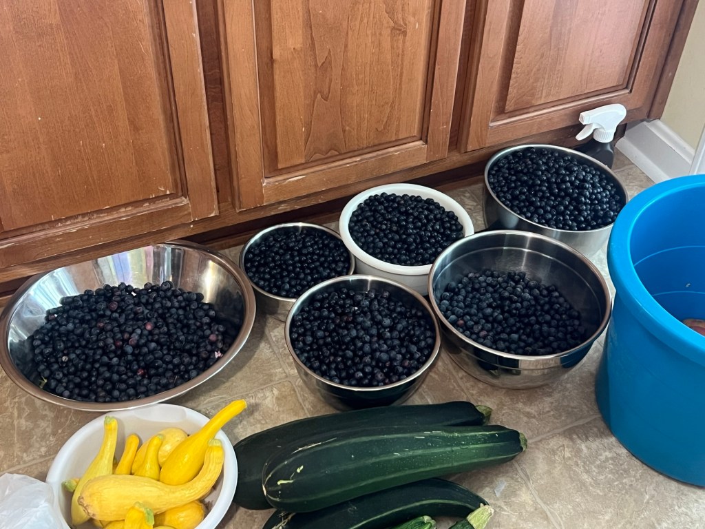 The blueberry bushes were heavy with their round, dark fruit, hanging in clusters like grapes. Harvesting the berries would have required one person to work all day long in the scorching summer heat.