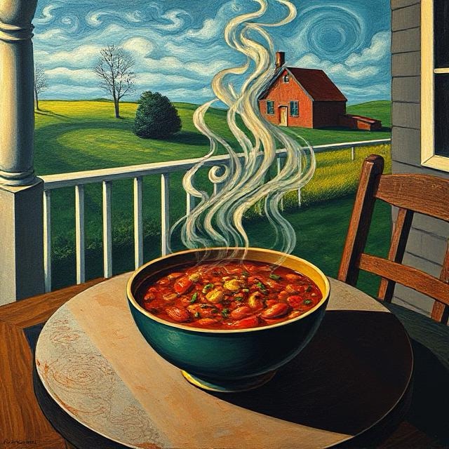 Who am I kidding? I needed a blanket, out there in my T-shirt and shorts, feeling the chill from the brisk, northerly winds, so I got one and wrapped myself up after I ate a steaming bowl of fresh chili.